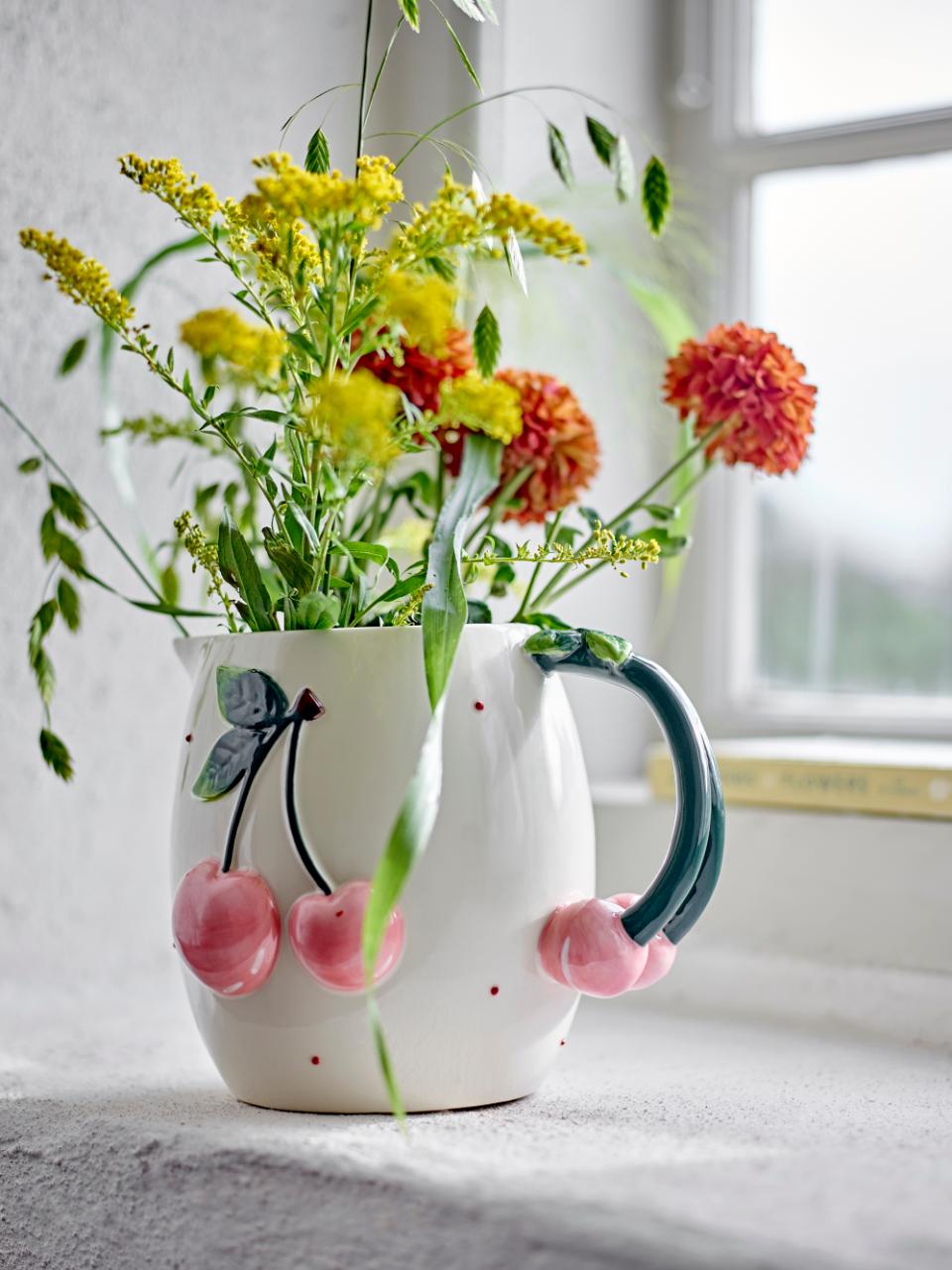 Crea un ambiente acogedor con esta preciosa jarra dela colección Creative de , que forma parte de Bloomingville Multibrand house. Con su suave esmalte rosa y sus encantadores motivos de cerezas, aporta vida y color a cualquier mesa. La jarra es perfecta para servir tu bebida favorita, pero también funciona como elemento decorativo en tu decoración.