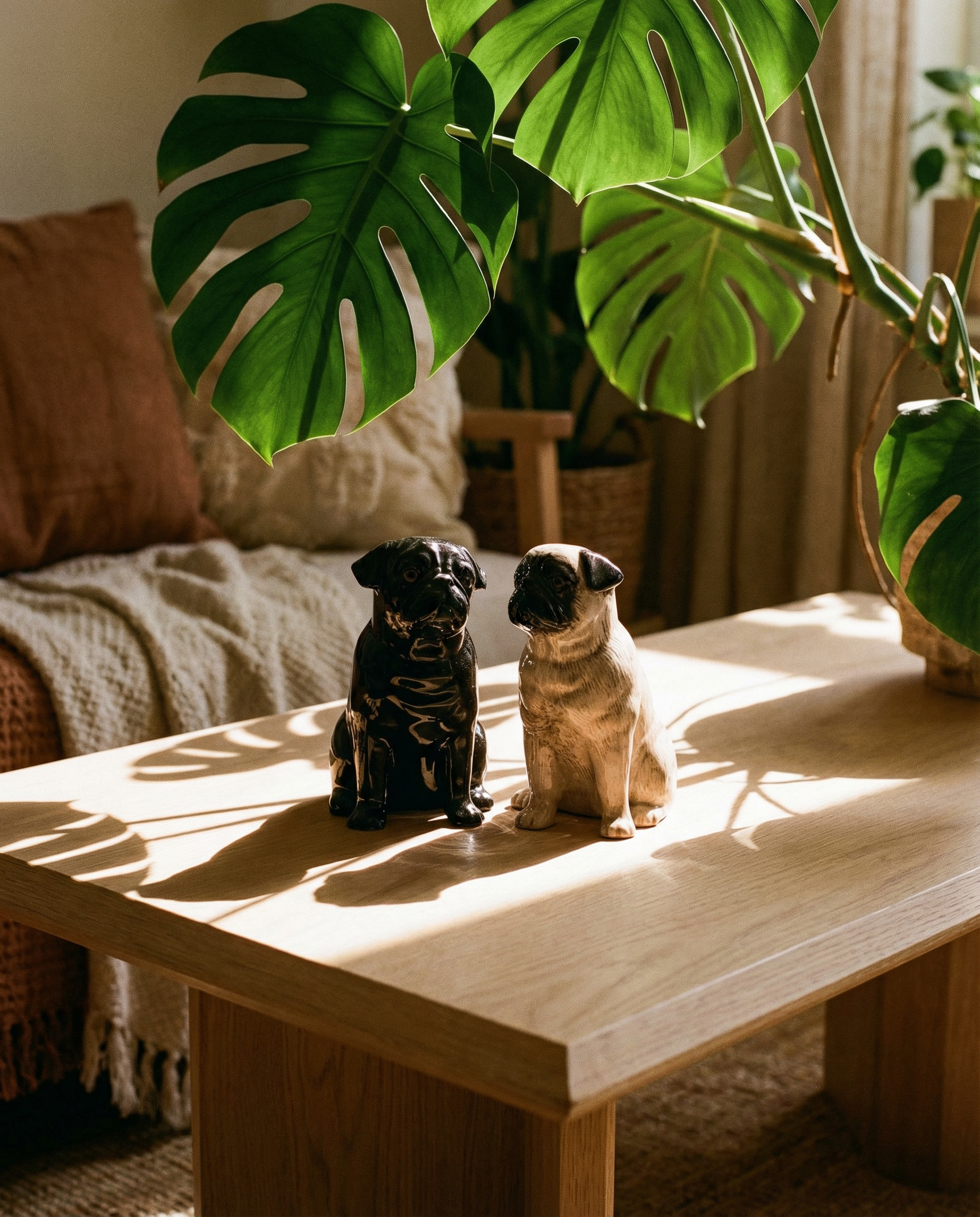 Este adorable juego de salero y pimentero con forma de pug, fabricado en gres, aporta un toque divertido a cualquier comida. Los pequeños perros pintados a mano están fabricados en gres de alta calidad y miden 8,5 cm de altura. Por supuesto, el juego es apto para uso alimentario y se puede lavar en el lavavajillas para facilitar su limpieza.