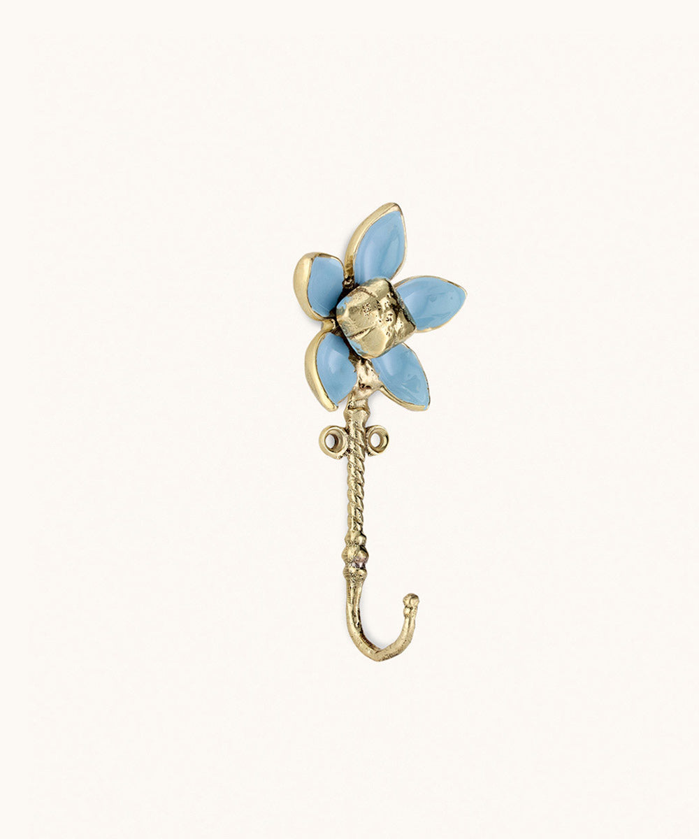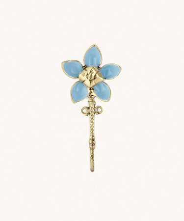 El colgador floral azul claro de Doing Goods es un delicado y decorativo colgador de pared que aporta encanto y estilo a cualquier estancia. Con su forma de flor en flor y un acabado en esmalte azul claro sobre un tallo de latón dorado, este pequeño pero llamativo colgador es tan funcional como bonito. Mide 13 x 6,5 x 3 cm y es perfecto para organizar los pequeños objetos de tu hogar.