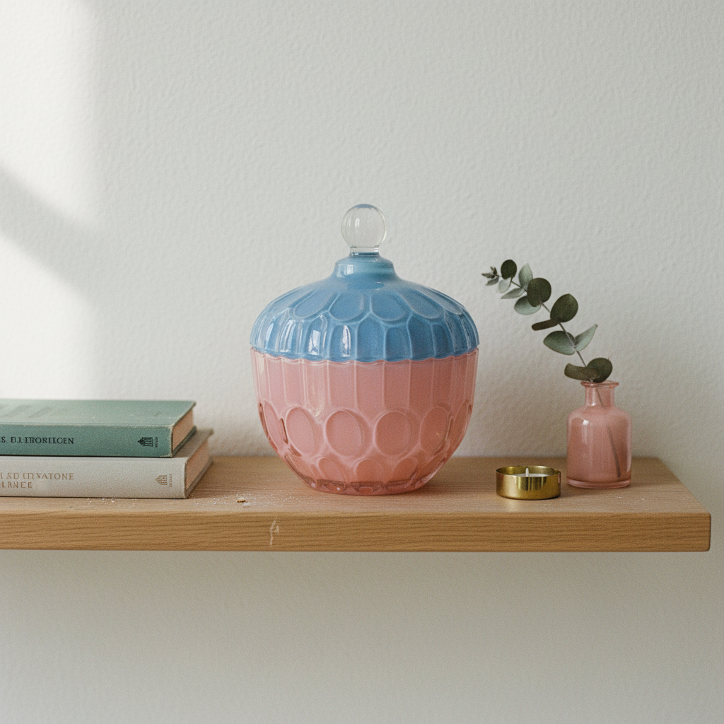 Questo barattolo decorativo con coperchio combina funzionalità ed estetica nella tua casa. Il barattolo è realizzato in un affascinante gioco di colori rosa e blu che lo rende un elemento decorativo di per sé, offrendo al contempo uno spazio pratico per riporre gli oggetti di uso quotidiano.