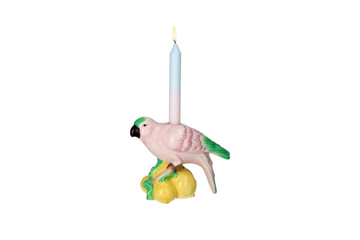 Nadaj swojemu domowi niepowtarzalny charakter dzięki tej uroczej świeczniku w kształcie papugi od GiftCompany. Delikatna papuga stoi na stosie cytryn i dodaje figlarnego akcentu do Twojego wnętrza. Świecznik w delikatnych odcieniach fioletu i zieleni tworzy przytulną atmosferę, niezależnie od tego, czy stoi na stole, półce czy parapecie.