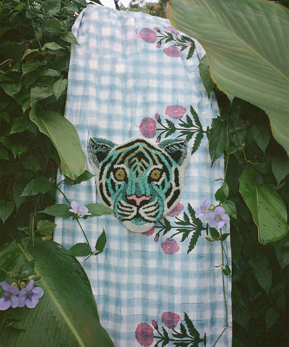The Admiral Tiger head rug is a unique and colorful addition to your interior. This hand-tufted rug in 100% wool features an eye-catching blue tiger motif that can serve as both a decorative floor piece and wall art. With the practical loop on the back, it can easily be hung up as animal-inspired wall decor.