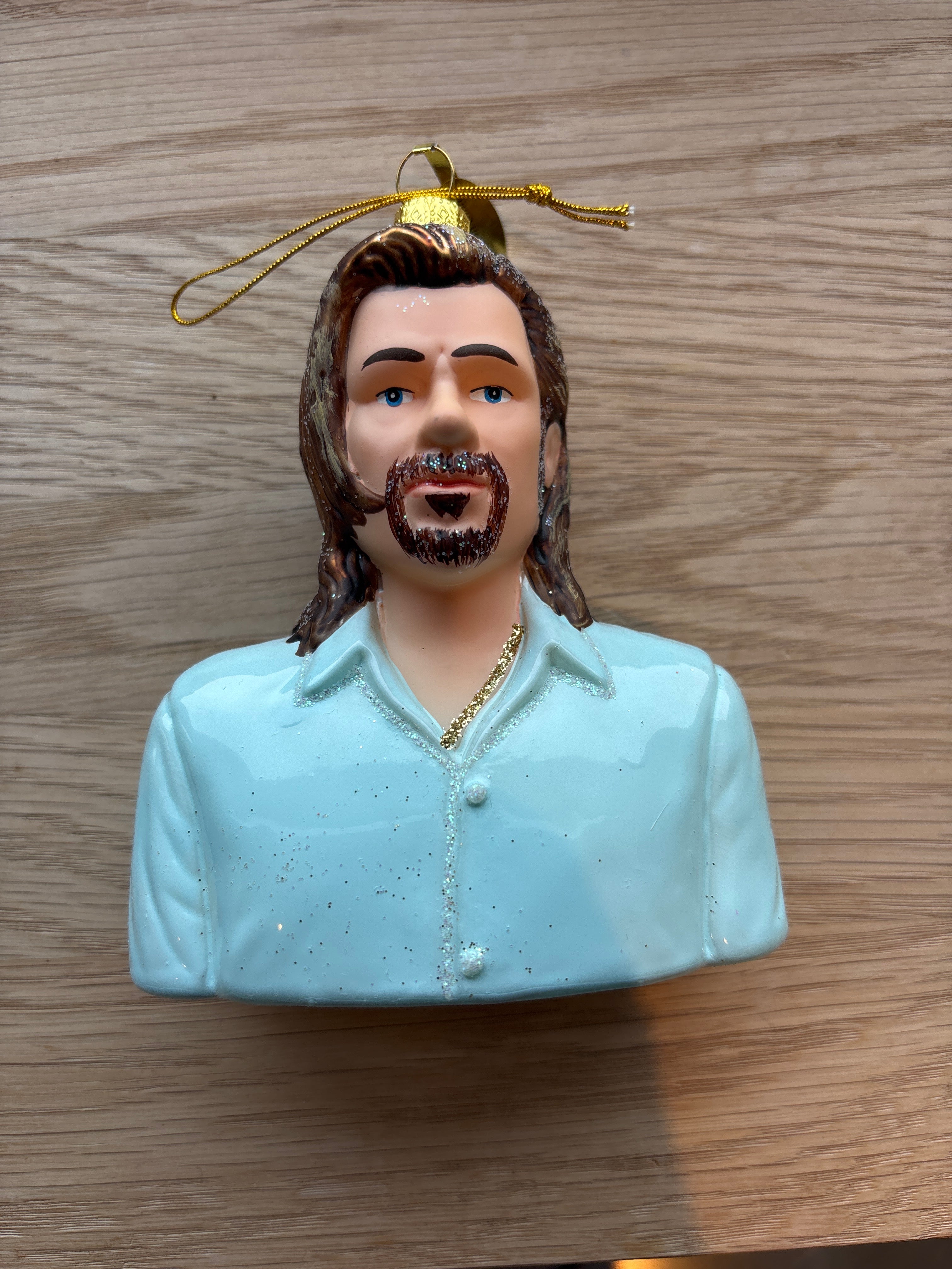 Made by Cody Foster, known for their high quality handmade ornaments, this Brad Pitt figurine is made with attention to detail. It works both as a topic of conversation among guests and as an artistic feature in your Christmas decorations.