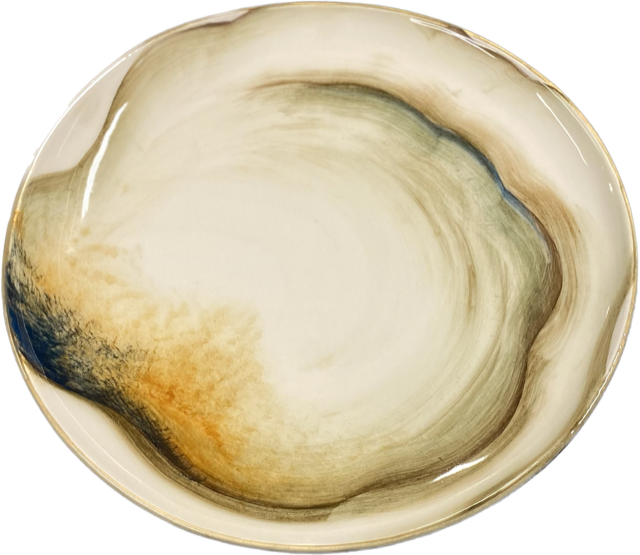 Create an inviting atmosphere at your table with the beautiful Giada Oyster plate. This plate is perfect for both lunch and dessert and measures 22 cm in diameter. Each plate is hand-painted, which gives a unique and varied expression that will adorn any setting.