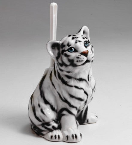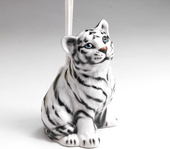 Hvid tiger Toiletbørsteholder - porcelænsfigur