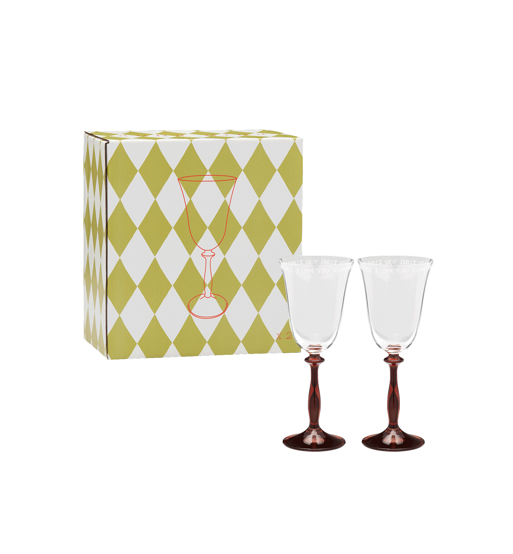 I Love You vinglas - Sæt med 2 stk