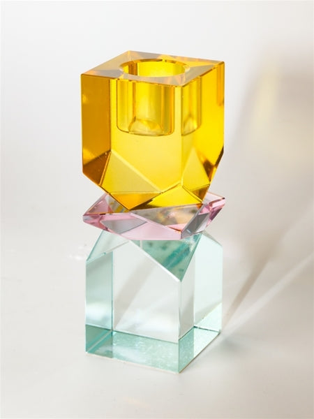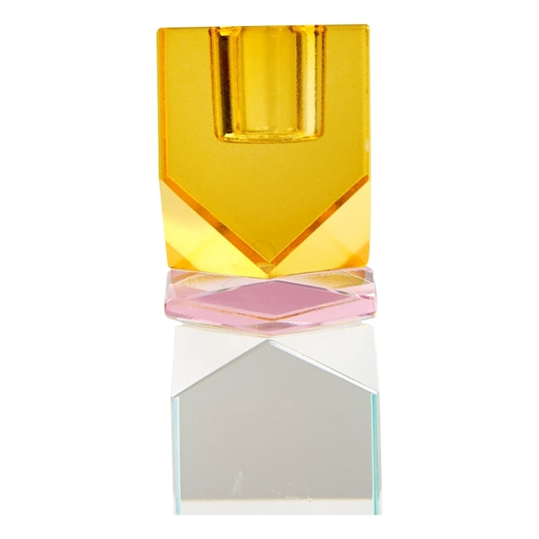 Krystal lysestage i gul/pink/lys mint