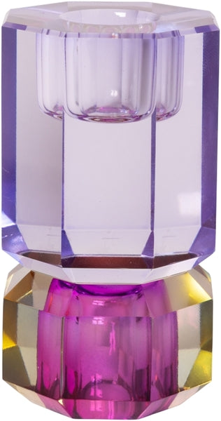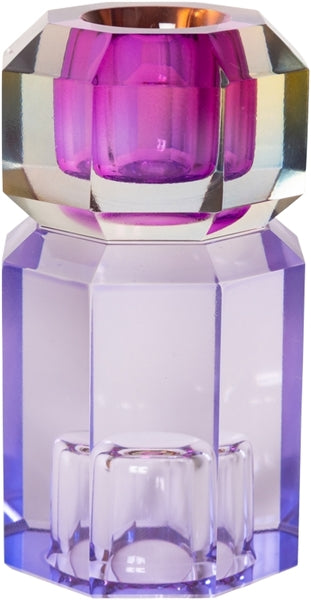 Oplev den unikke charme ved vores krystalstage i en smuk lilla/blå ombre. Denne stage skaber en varm og indbydende atmosfære, uanset hvor den placeres. Med et moderne design kan stagen vendes, hvilket giver mulighed for et anderledes udtryk alt efter dit humør eller indretning.