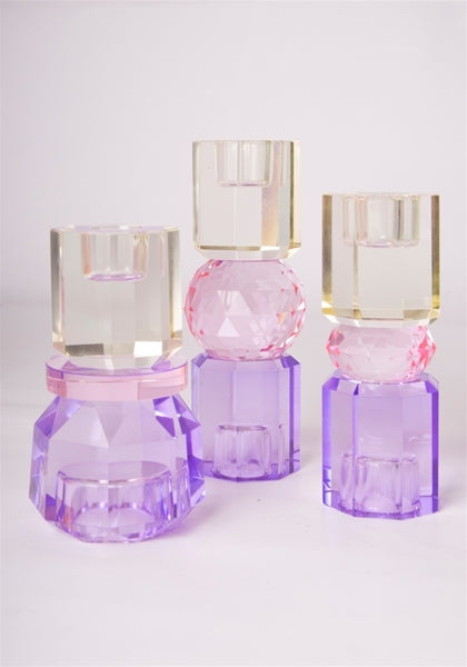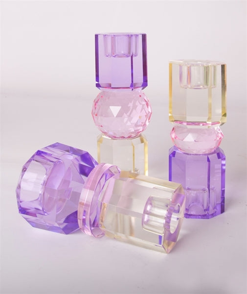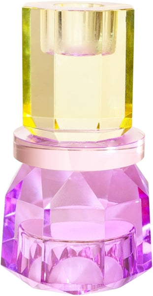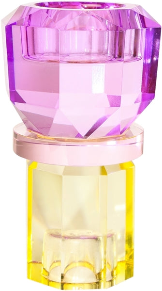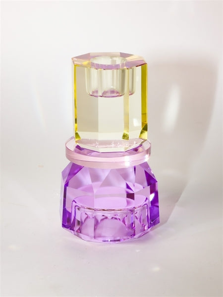 Den elegante krystal stage i smør/baby lyserød/violet tilføjer et strejf af charme og stil til enhver indretning. Med sin unikke form og farvevariationer kan den nemt vendes for at skabe et nyt udtryk, hvilket gør den til et alsidigt valg til både hverdag og fest.