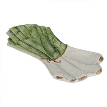 Discover the perfect combination of functionality and aesthetics with this leek dish from Caja Company. This hand-painted Italian faience dish not only serves as an elegant pot holder, but can also be used as a decorative small dish for serving snacks or small dishes.