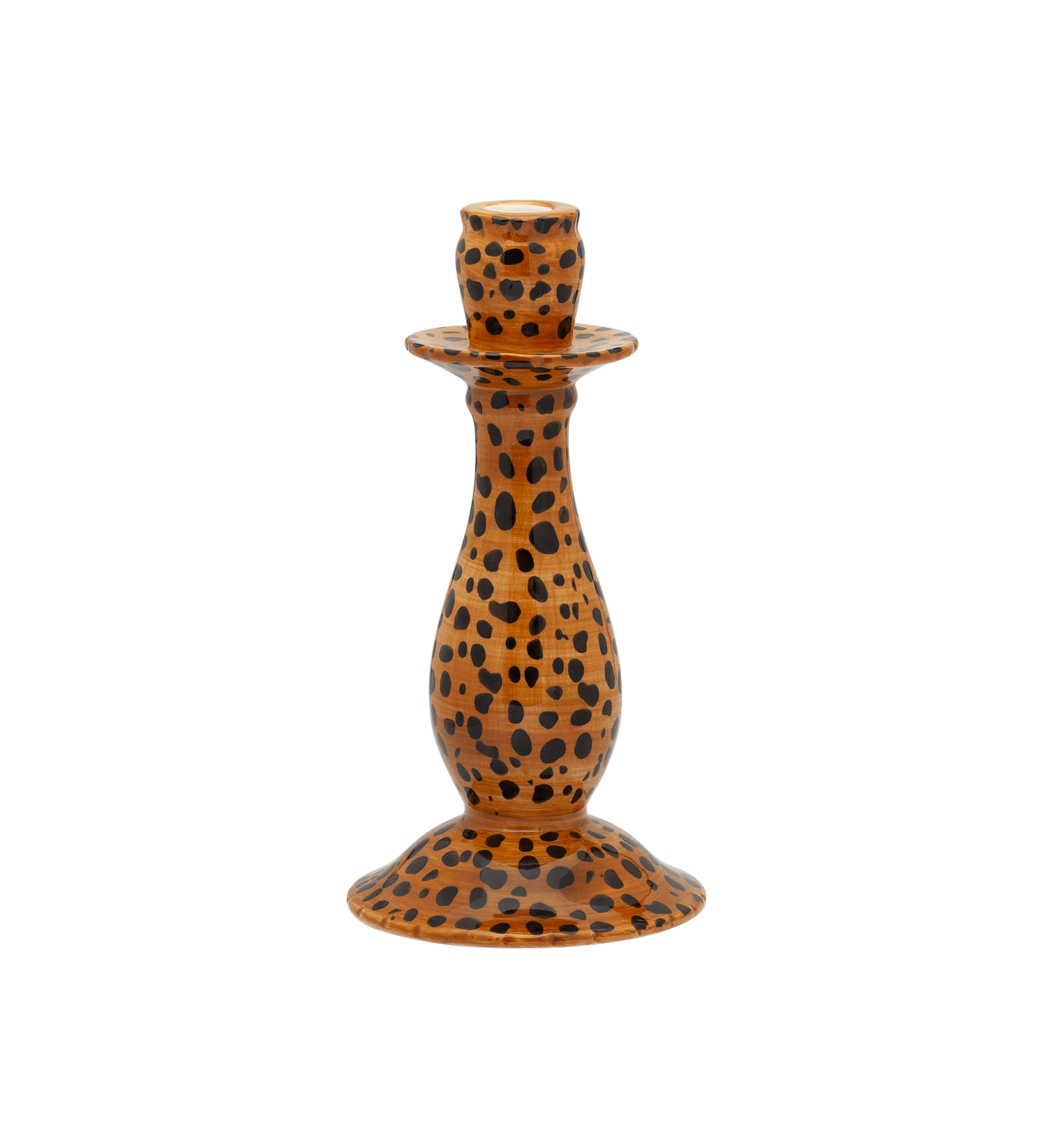 The leopard candlestick is a unique ceramic candlestick with an adventurous leopard design that brings life and character to your interior. The classic shape combined with the bold pattern means that this candlestick will be a statement piece on your shelf or at the dinner table.