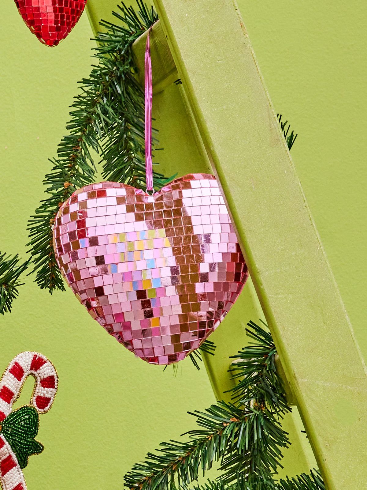 Create a party atmosphere with a pink heart-shaped disco ball