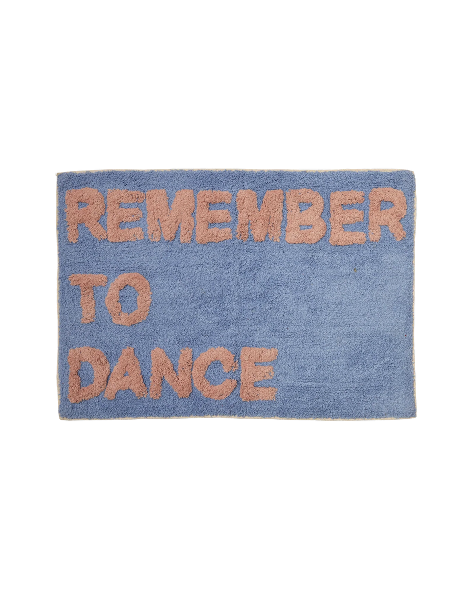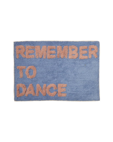 Add a colorful and inspiring touch to your home with this rectangular tufted rug from Rice. With its lively message "Remember to dance," it will not only welcome guests but also remind you to enjoy life. The blue and pink color combination fits perfectly in the hallway, bedroom, children's room, or bathroom.