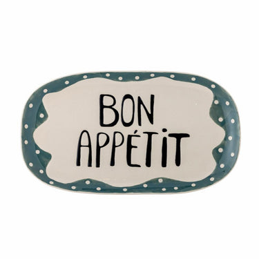 This beautiful serving dish from Bloomingville is a perfect addition to any table setting. The hand-painted stoneware with the text Bon Appétit in the center adds a personal touch, while the soft lines and small dots along the edge make the dish a decorative detail on your dining table.