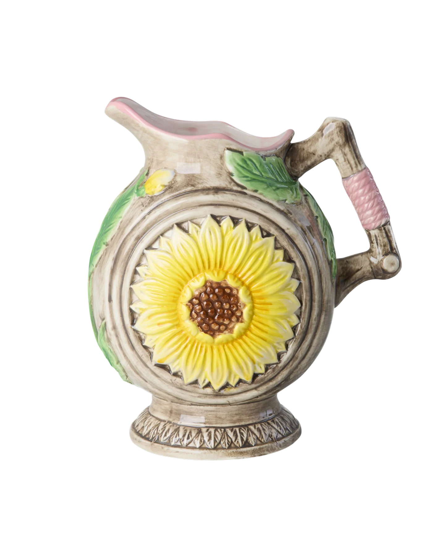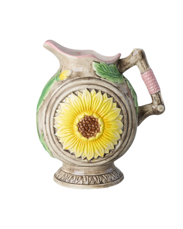 Bring liv og glæde ind i dit hjem med den charmerende solsikke kande fra Rice. Denne håndmalede kande med smukke gule solsikker, grønne blade og fine pink detaljer er ikke kun en praktisk genstand, men også et dekorativt element, der kan pryde ethvert bord.