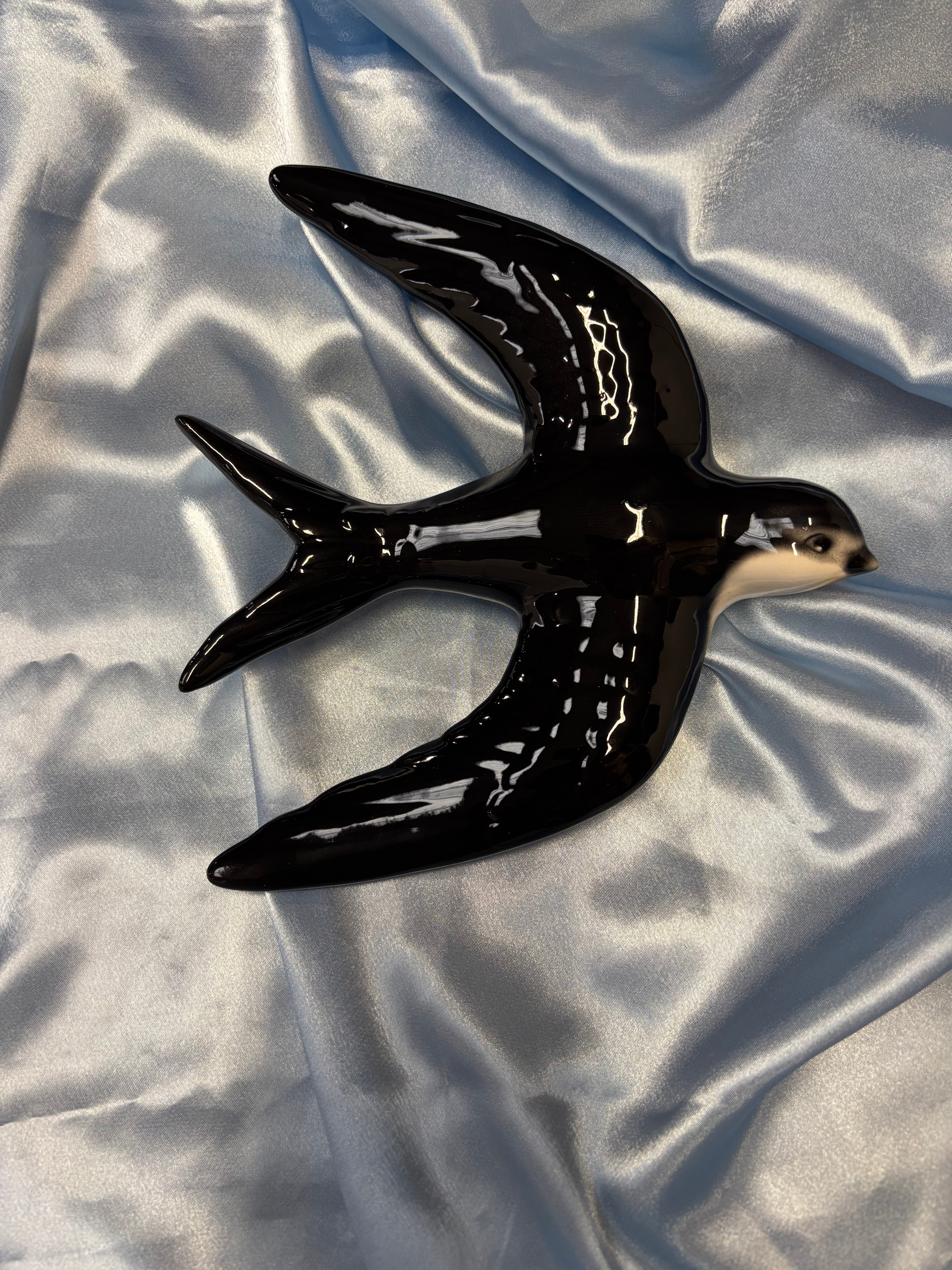 Håndmalet italiensk porcelænsfigur af en elegant svale