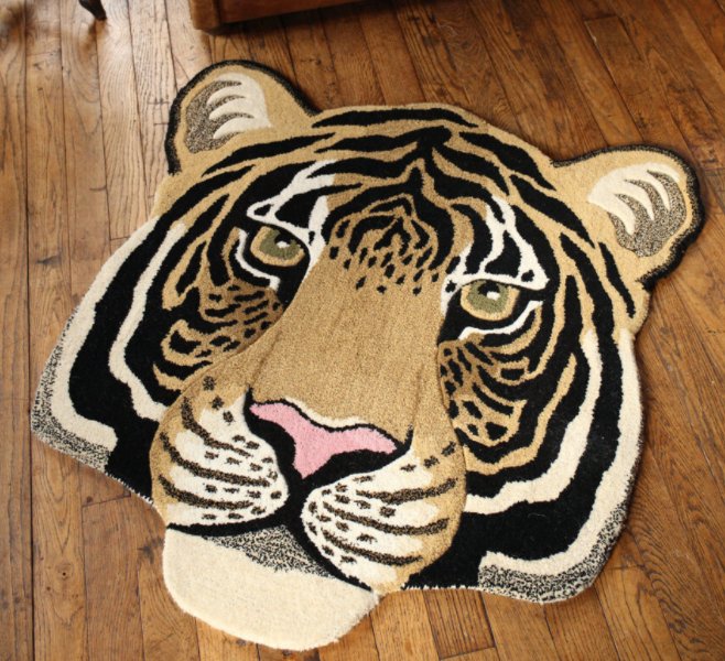 The hand-woven construction ensures that each tiger head rug has its own unique character. The many fine details in the tiger's face give the rug an authentic expression that adds personality to the room. The combination of wool and cotton provides both durability and a pleasant soft surface.